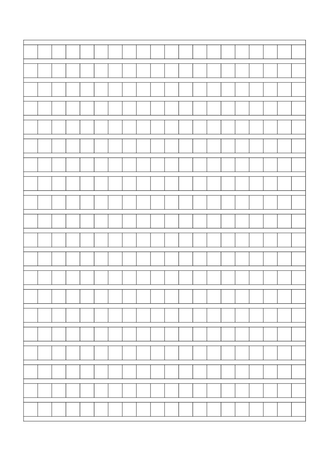 新建一个空白文档,插入一个表格,规格20列,2行。将第一行的20个单元格合并为一个,设置行高为0.3厘米。设置第二行的20个单元格行高为0.9厘米,单个格子列宽为0.9厘米。